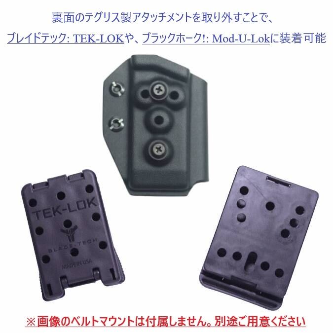 ●付属のテグリス製アタッチメントを取り外すことで、別売りのブレイドテック:TEK-LOKやブラックホーク!: Mod-U-Lok マウントに取り付けも可能。