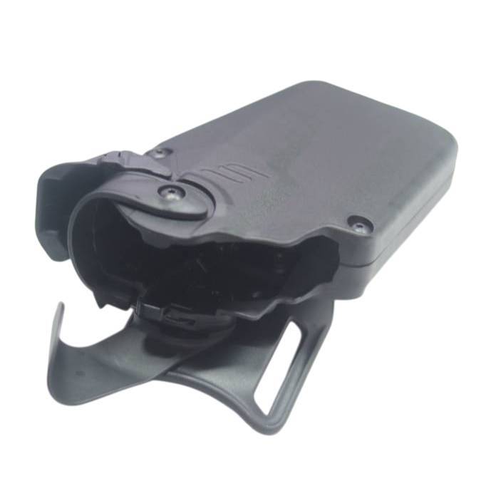 ●SLS(Self Locking System)搭載で親指でレバーを押すことでロックフード/ オプティックガードが下がります。さらにALS(Automatic Locking System)も搭載され、レバーを親指で下げることでロックが解除され銃を抜くことができます。