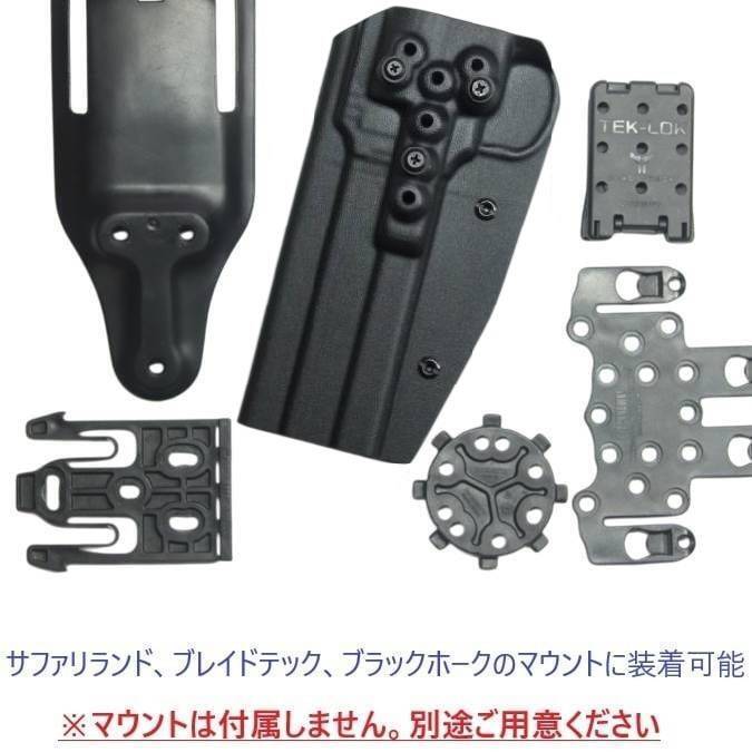 ●ホルスターに付属している3つのネジでブラックホーク、ブレイドテック、サファリランド社のマウントに装着可能。