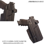 ●Kydexの仕様上、抜き差しをすると銃のスライドやライト等にスリキズがつきます。
