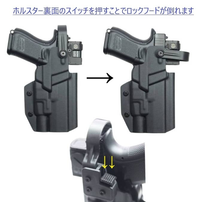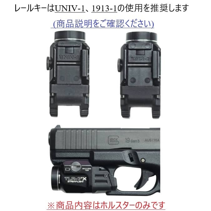 ●TLR-7のレールはUNIV-1、1913-1の使用を推奨します。他のレールを使用されると収納時に銃の高さが変わり銃のスライド部分がロックフードに干渉する場合がございます。