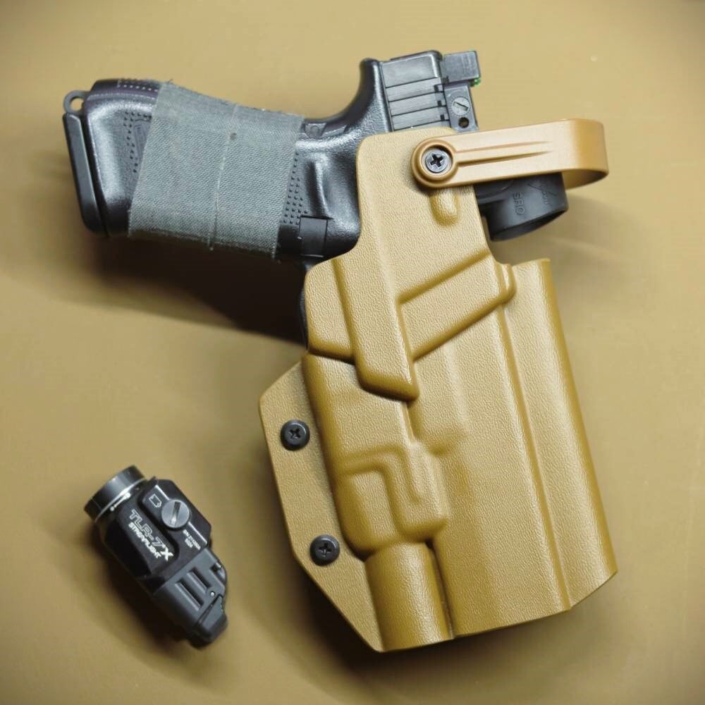 六七五 Glock 17/19 ストリームライト TLR-7 ライト 専用 カイデックスホルスター TRS Level2 ロックフード付き Coyote Brownカラー 国内製造品 | 六七五 -ミリタリー・アウトドア-
