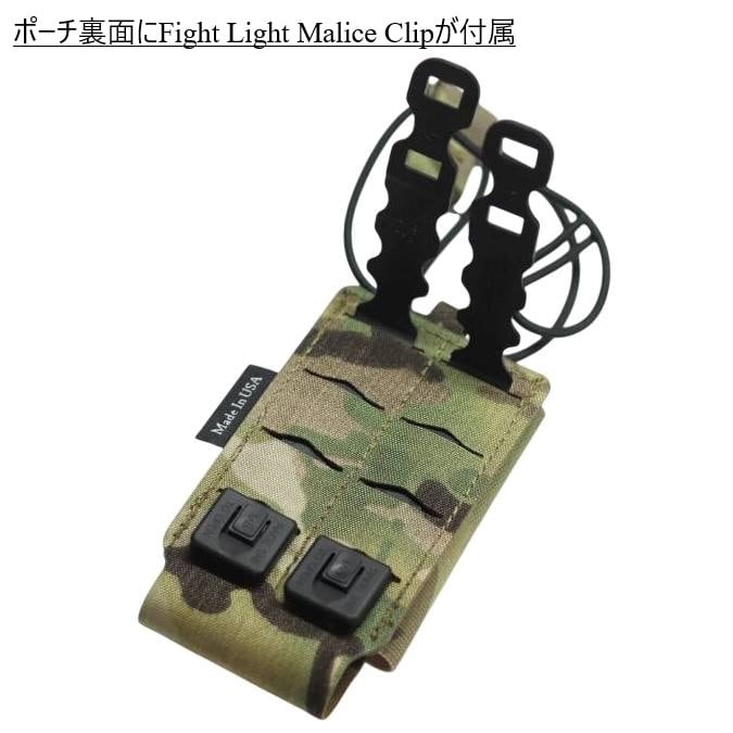 ●ポーチ裏面に取り外し可能のFight Light Malice Clipが付属し、Molleに装着可能。