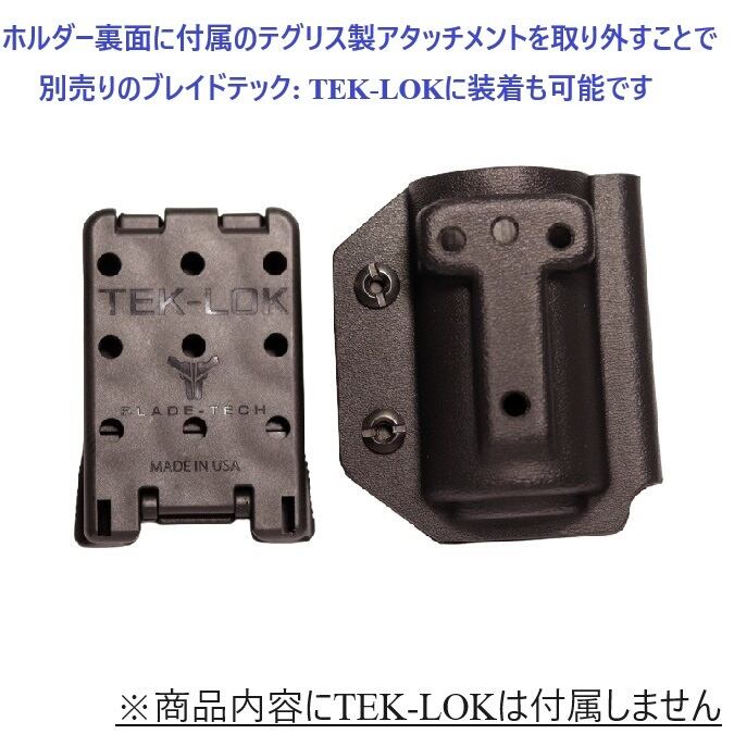 ●付属のテグリス製アタッチメントを取り外すことで、別売りのブレイドテック:TEK-LOKやブラックホーク!: Mod-U-Lok マウントに取り付けも可能。